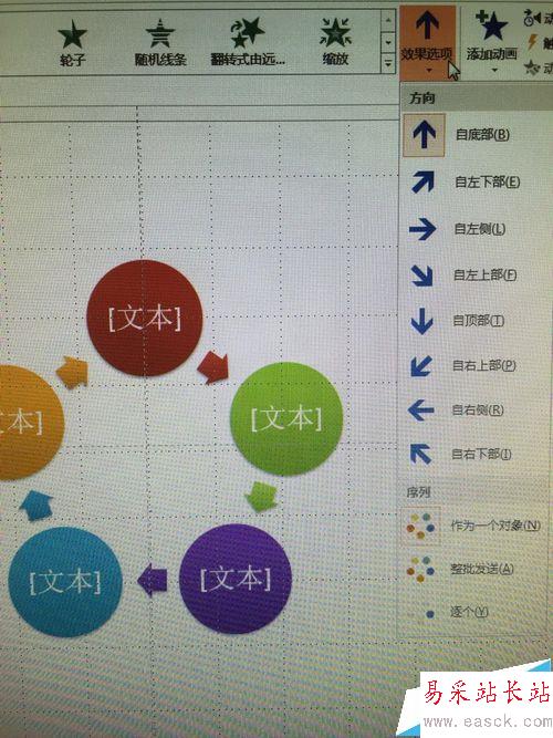 做PPT時,都喜歡用smartart,但是如何讓smartart的文本逐個出現,怎么實現的?網上搜索好多,答案是多樣的,但是唯一共同的就是找到“效果選項-逐個”好,話不多說,來看看我在用2013版PPT的操作吧。
