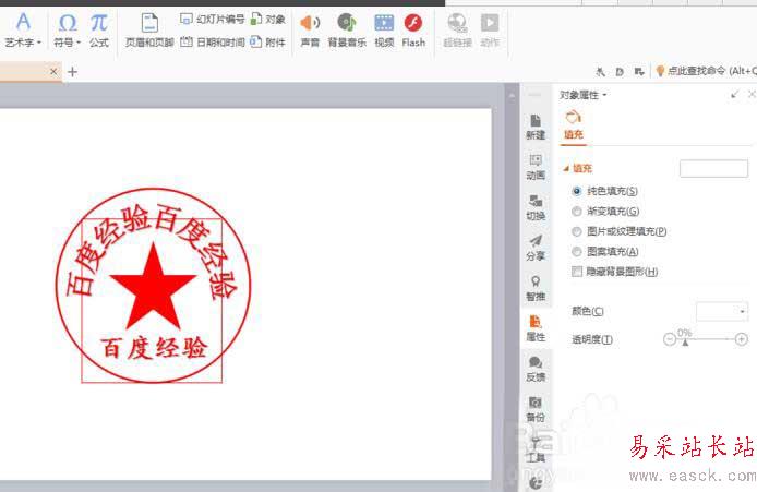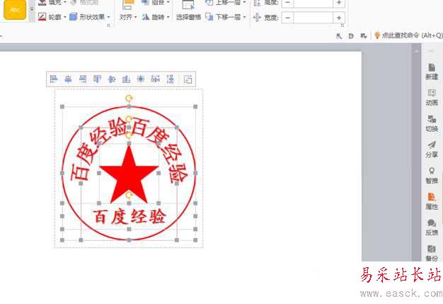 我們經常在PPT里面右下角看到很多公司的公章標志,無論是企業宣傳的ppt還是課件ppt,里面的公章標志和真正刻印出來的簡直一模一樣,那么它們是怎么制作出來的那?今天我們就來看看詳細的制作教程,圖章如下圖所示。