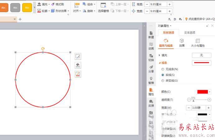 1、打開軟件后,插入一個圓圈然后在右側設置成無填充,邊框顏色設置為紅色,并將線寬度設置為3即可。然后按住shift開始拖動圓圈放大,按住shift是為了平均放大
