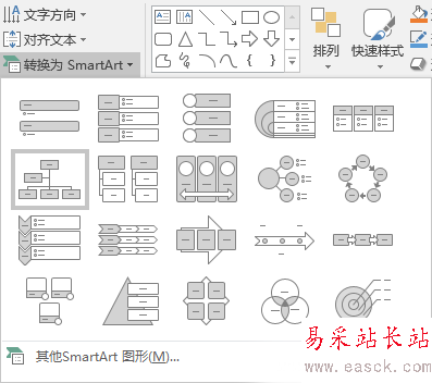 圖3 選中文本框后點擊“開始→轉換為SmarArt→組織結構圖”