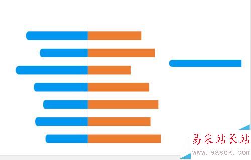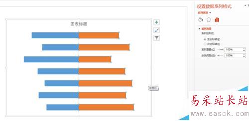 3、設置數據格式。右鍵圖表,“設置數據系列格式”,在系列選項中,把系列重疊的數值設為100%,分類間距也設置為100%,即可得到如下圖效果
