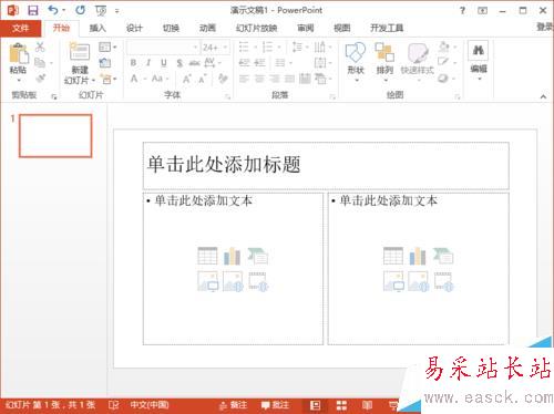 PowerPoint2013中,新建空白幻燈片演示文稿,默認(rèn)的版式就是上下兩個(gè)文本框,毫無(wú)特色可言。那么,怎么更改這些版式呢?一起來(lái)看看吧!