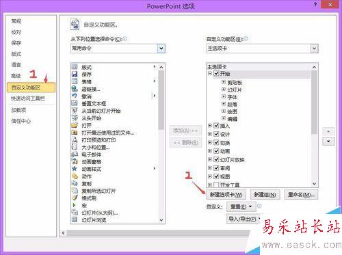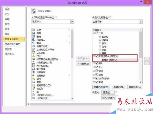 ppt2013自定義功能區怎么添加項目卡和命令?