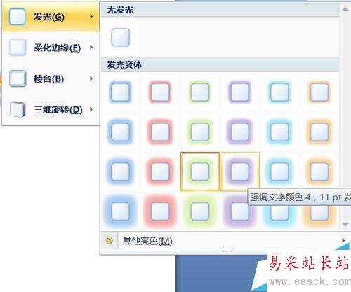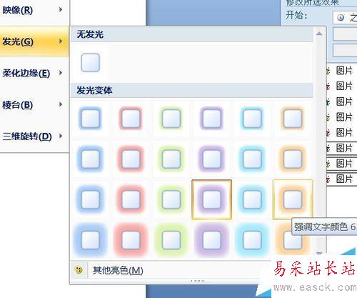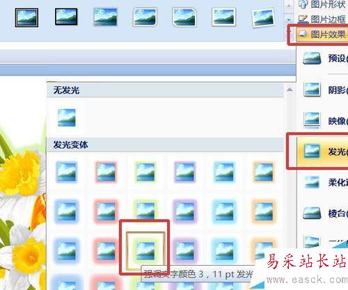3、繪圖工具——格式——圖片效果——發(fā)光,選擇一種喜歡的發(fā)光效果。