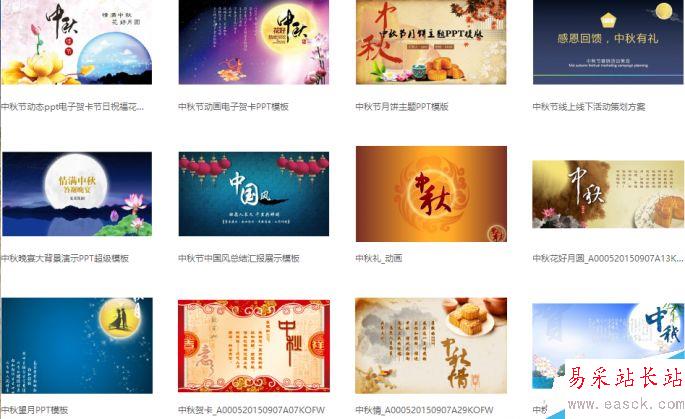 使用模板是最快速便捷的方法了。這里面介紹了兩個模板網站,OfficePLUS.cn(www.officeplus.cn)和Doc稻売兒(www.docer.com),這兩個網站都提供了搜索功能,輸入關鍵詞“中秋”或者“中秋節”,就可以搜出很多模板啦。