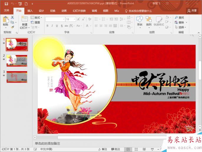 下載得到的,一般就是PPT文件,雙擊打開,其中的各種圖片、文字元素等都是可編輯的,改寫成自己要說的祝福語,一個中秋賀卡就OK啦。