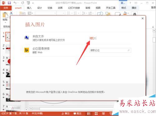 4、在“插入圖片”對話框中,點擊來自文件選項中的“瀏覽”選項按鈕。如圖所示;