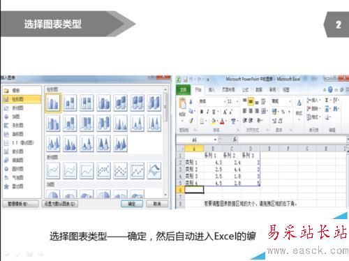 2、選擇圖表類型——確定,然后自動進入Excel編輯界面。