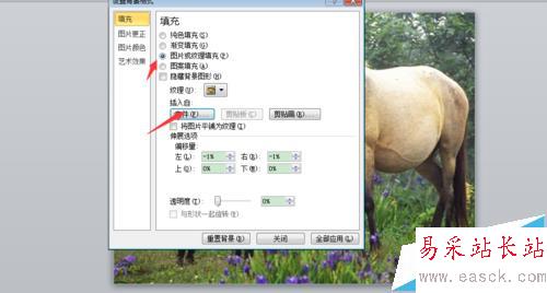 9、用剛才未做虛化處理的圖片作為幻燈片的背景。“設計——背景樣式——設置背景格式——圖片或紋理填充——插入文件圖片”