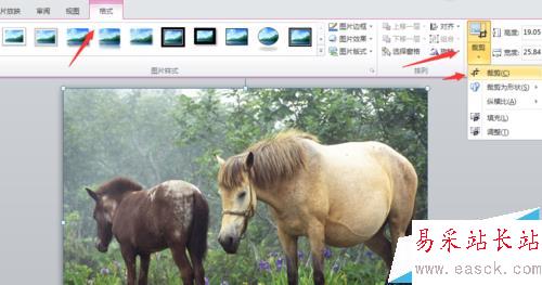 3、如果圖片與幻燈片大小不符,可以進行裁剪。“格式——裁剪——裁剪”