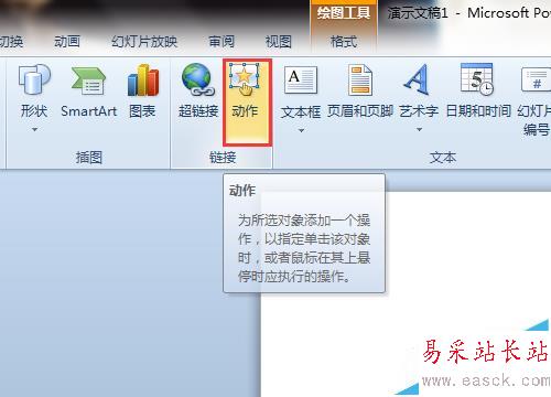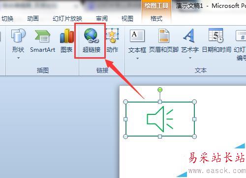 接下來,我們需要單擊選中這個作為媒介的形狀/圖案,再來就可以直接點擊“插入”菜單里面的【超鏈接】,也可以使用“動作”按鈕然后在“單擊鼠標時的動作”里選擇“超鏈接到:”進行下一步操作。