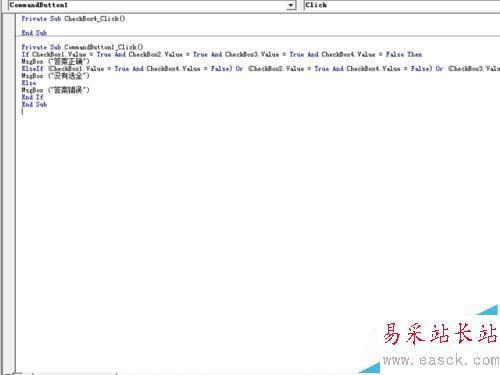 If CheckBox1.Value = True And CheckBox2.Value = True And CheckBox3.Value = True And CheckBox4.Value = False Then