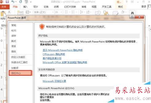 4、彈出如圖所示界面,點擊左邊的“信任中心”