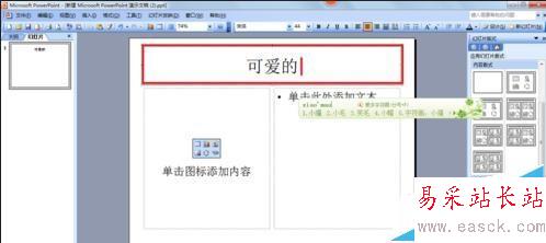 6、如圖所示,鼠標(biāo)點(diǎn)擊“單擊此處添加標(biāo)題”