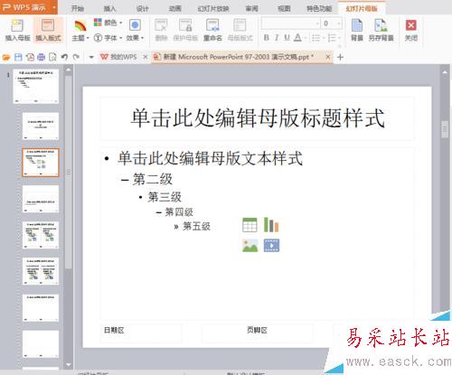 4、你也可以改變幻燈片的版式。在最上面找到視圖,點(diǎn)擊視圖,然后找到幻燈片母版式,點(diǎn)擊,出現(xiàn)一些母版,選擇你所需要的版式。