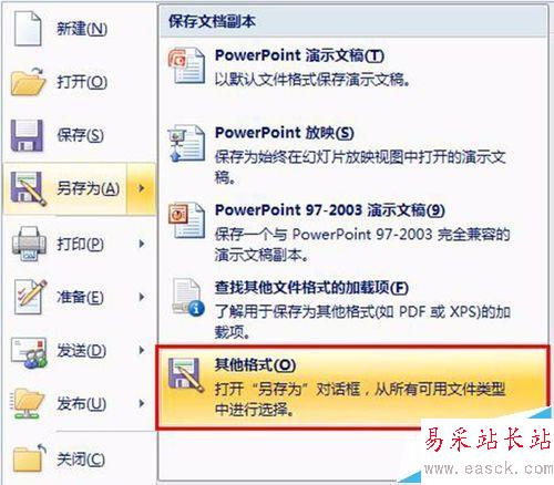 2、單擊【office按鈕】圖標,選擇【另存為-其他格式】;