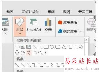 1、打開(kāi)ppt,點(diǎn)擊“插入”→“形狀”,選擇喜歡的