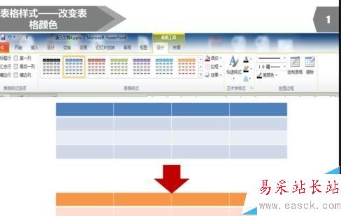 2、點擊ppt中的表格,然后點擊“設計”→“表格樣式”