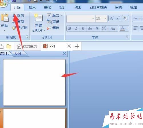2、新建一個幻燈片。在開始的時候新建一個新的幻燈片,也可以自己在別的幻燈片上。