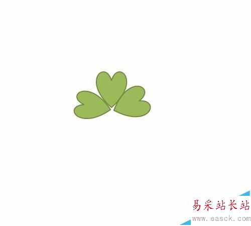 5、再加一片心形葉子。再在空白的地方點(diǎn)擊粘貼,又一個(gè)心形的圖案出現(xiàn)了,調(diào)整位置,將三片葉子放好。