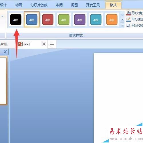 6、給橢圓形調色。雙擊橢圓形,然后會發現導航欄上會有各種顏色出現,這時就可以選擇黑色來為橢圓形調色。