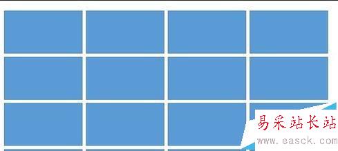 2、根據(jù)需要復制多個矩形,這里以16個為例,對其排列成4*4樣式,如圖所示