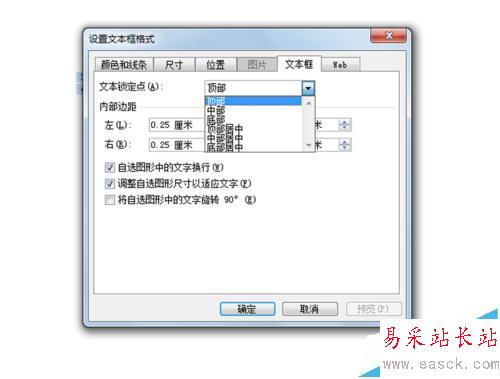 4、在舞臺上選擇這兩個矩形框,右鍵單擊從下拉菜單中選擇設置文本框格式,在彈出的對話框中設置文本鎖定點為頂部。