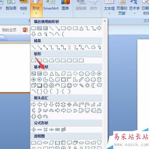 3、選擇橢圓形。在形狀中找到橢圓形,點擊這個橢圓形的圖案,雙音符就是用這橢圓形來制作的。