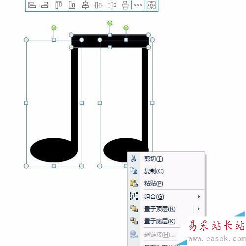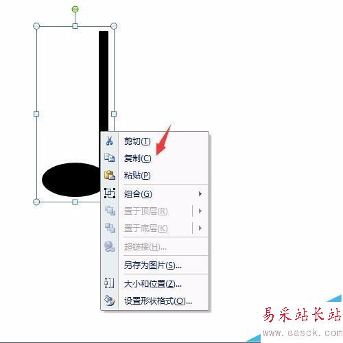 8、做出另一個音符。右擊鼠標,然后選擇復制,再點擊右鍵選擇粘帖,這樣另一個音符就又做好了,如圖所示。