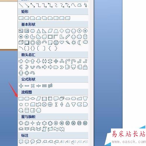 6、選擇矩形圖案。在選擇,形狀中找到矩形的圖案,這個圖案不是單獨就可以用的,畫出來后還有調整形狀。