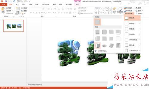 8、然后找到形狀效果中的預設,選著你要預設的玻璃形狀:
