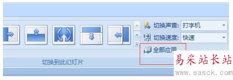 2、如果你只需要這一種切換模式,就單擊全部應(yīng)用,就會(huì)全部應(yīng)用到ppt中。