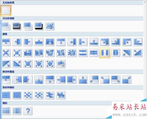 3、點(diǎn)擊動(dòng)畫菜單欄的三角下拉菜單,彈出切換的效果,選擇你需要的效果單擊就好了。
