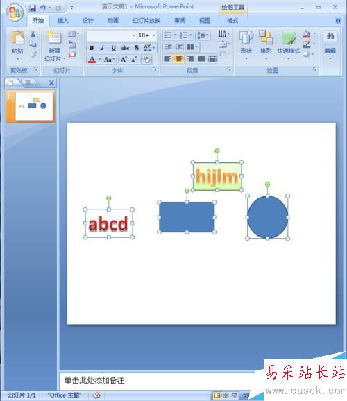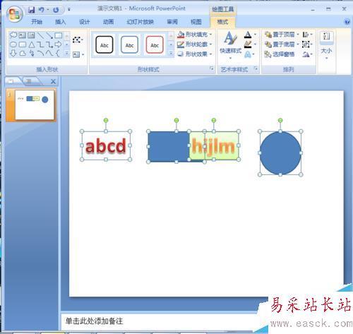 1、打開需要對齊的演示文稿,先將四個對象選中,鼠標點擊abcd,摁shift鍵,然后點擊另外三個對象。
