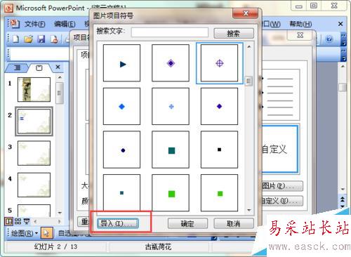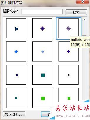 1、在打開的“圖片項目符號”對話框中,單擊導入。