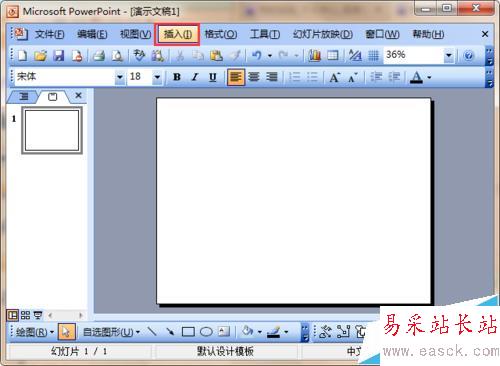 1、打開ppt軟件,建立一個空白的文檔,如圖所示,盡可能的是一頁。