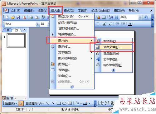3、在下拉菜單中選中“圖片”;再選中“來自文件”;如圖所示。
