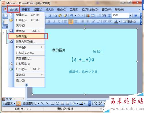 7、編輯完了以后,單擊“文件”;在下拉菜單中選中“另存為”