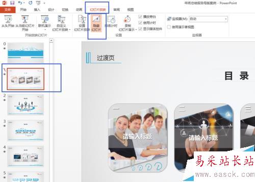 1、如果在放映過程中有些幻燈片是你不想展示的,可以在選中幻燈片以后,選擇“幻燈片放映”中的“隱藏幻燈片”。如果想要取消隱藏的話,再點擊一次“隱藏幻燈片”就可以了。是不是很簡單?。
