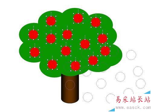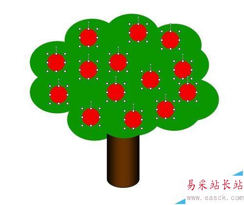 3、但如果是像下圖這種,想只組合蘋果樹里的蘋果,但用以上方法又會將樹一起組合,就可以用另一種方法。