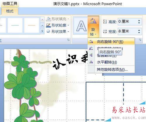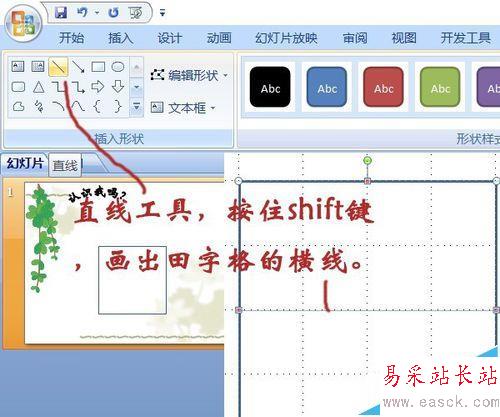 5、復制橫線,格式工具欄中,點旋轉,向右旋轉。將橫線改為豎線。田字格完成。