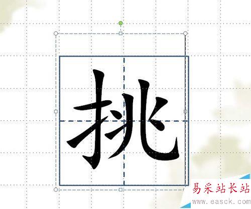 3、輸入文字。這里以“挑”字為例。輸入完成,移動左右鍵,將文字放置在合適位置。