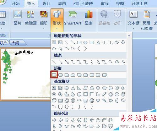 1、視圖菜單里打開網格線。插入——形狀——矩形。按住shift鍵拉出一個正方形。