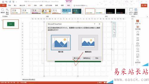 7、單擊確定后系統(tǒng)會彈出一個提示框,這時候選擇最大化,即可看到,圖片設(shè)置為幻燈片的大小,二者完全吻合,如下圖所示:
