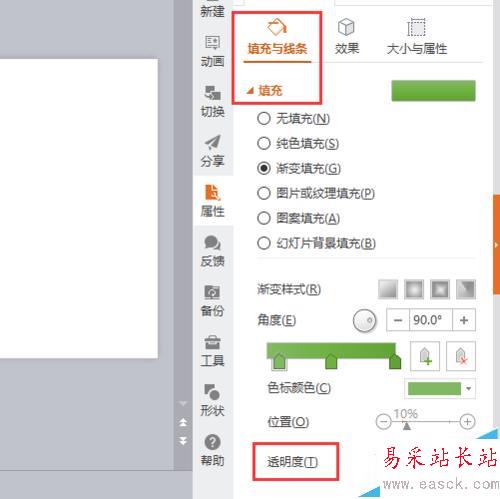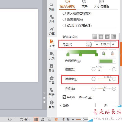 在調整透明度過程中,可通過調整角度,確定透明度是從上到下還是從左到右。