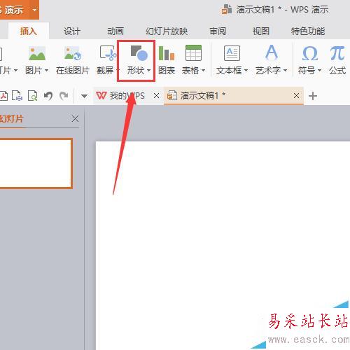 2、選擇【插入】工具欄下面的【形狀】按鈕,如下圖所示: