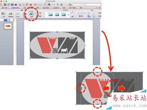4、也可調整圖片四角的"粗線"邊框,改變圖片形狀。制作其他形狀的圖片與以上方法相同,在第二步選擇其他形狀即可。