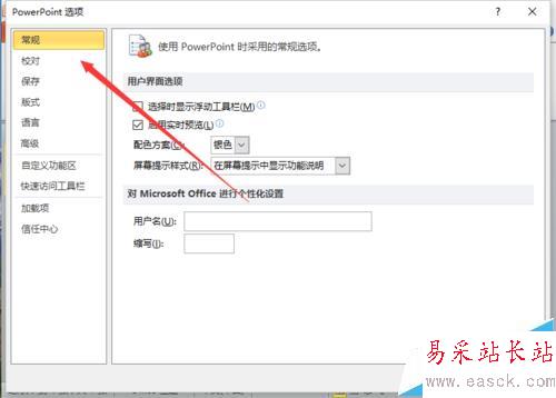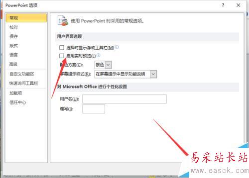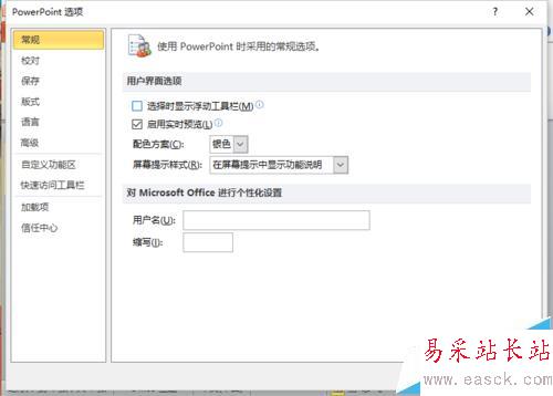 4、點擊“選項”命令選項后,這個時候會打開“PowerPoint選項”對話框。如圖所示;
