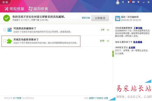 1、啟動360安全衛士,依次單擊查殺修復-漏洞修復。