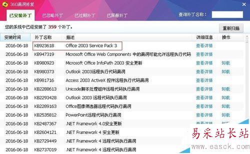 3、找到“KB923618-Office 2003 Service Pack 3"補丁,勾選,點擊“立即修復”